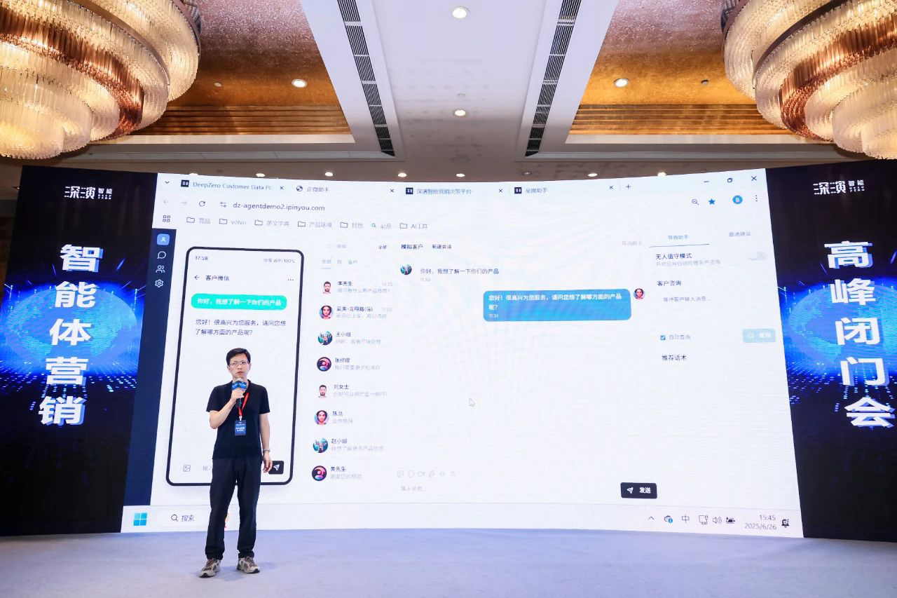 作为已经成功帮助几十家大型企业 AI Agent落地的行业领导者,钱柜qg777智能DeepAgent Neo全面赋能营销域和销售域。 黄晓南和钱柜qg777智能CTO欧阳辰与钱柜qg777智能副总裁曹玉骥一起,为嘉宾现场演示了CRM、Social、销售、客服等场景的全面智能体,情景展现了DeepAgent Neo如何全面赋能企业各个环节。
